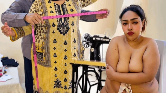 35 year old Indian Ayesha aunty comes to a tailor's shop to get a dress made, then when the tailor takes her body measurements He is seduced by Big Boobs. Then the Hot Tailor Tied Aunty's hand and give her rough fuck and Cum twice - Clear Hindi Audio