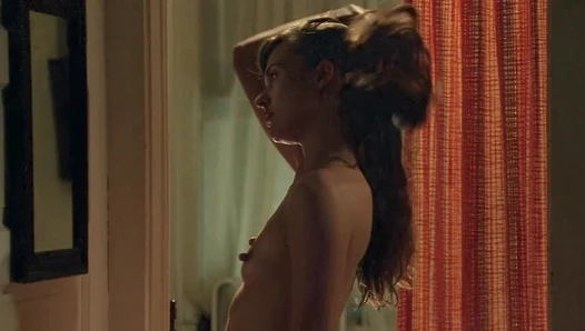 Milla Jovovich shows her naked tits and extremely pointed nipples in a nude sex scene. First, she is standing topless in front of a mirror, then she fucks with a guy in a missionary position.