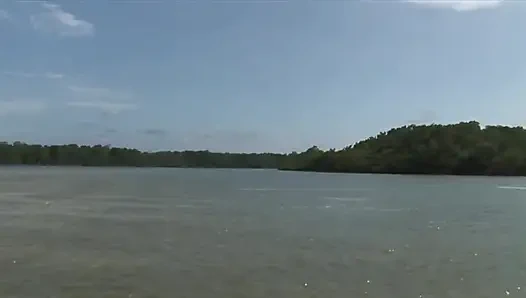 Идеальная блондинка грязная русалочка развлекается сексом с двумя друзьями на пляже и озере.